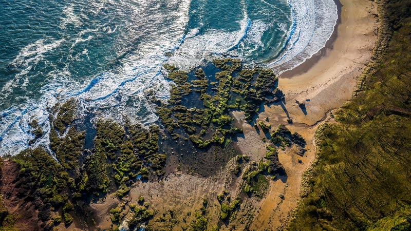 The tidal pools along Seacliff Beach, Scotland.© Amazing Aerial Agency / Andy Smith