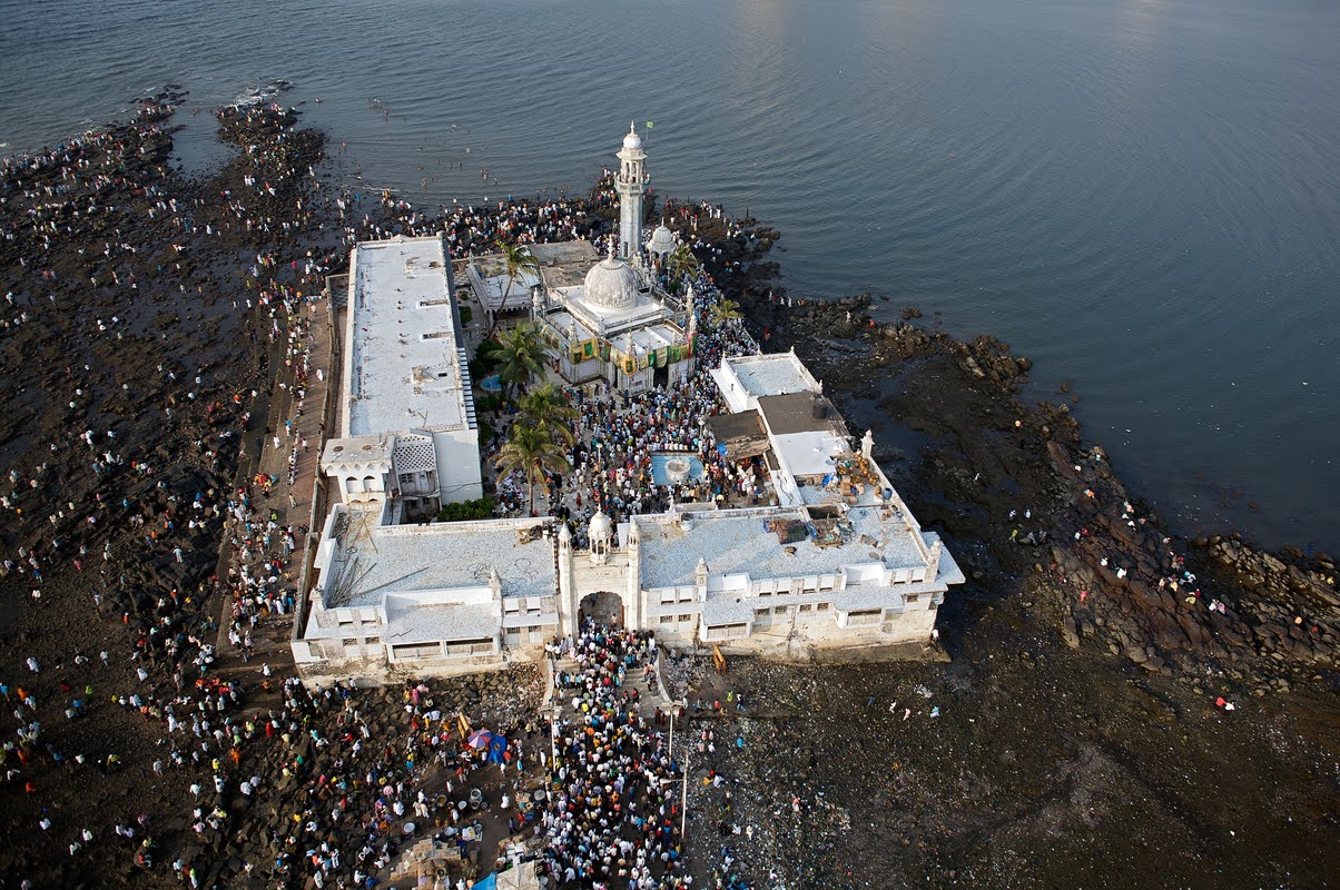 Worshippers enter Haji Ali Mosque in Mumbai, India. Nicolas photographed numerous religious festivals while in India, including the Kumbh Mela. © Amazing Aerial Agency / Nicolas Chorier